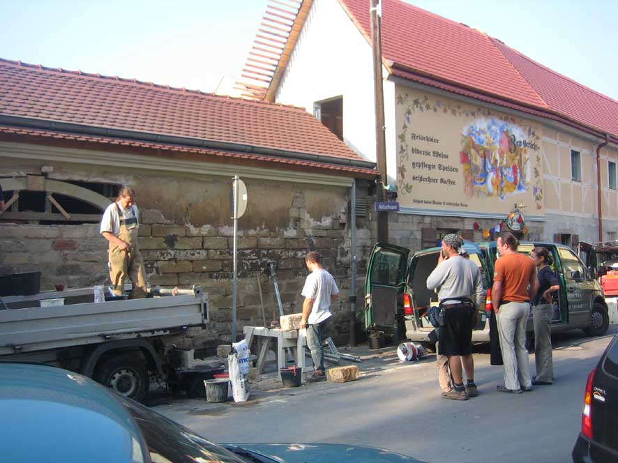 Ist es nicht schön geworden ! Dieses Jahr ist dann noch geplant den alten Putz zu entfernen, den Sandstein wieder aufzuarbeiten und die Fassade neu zu verfugen.